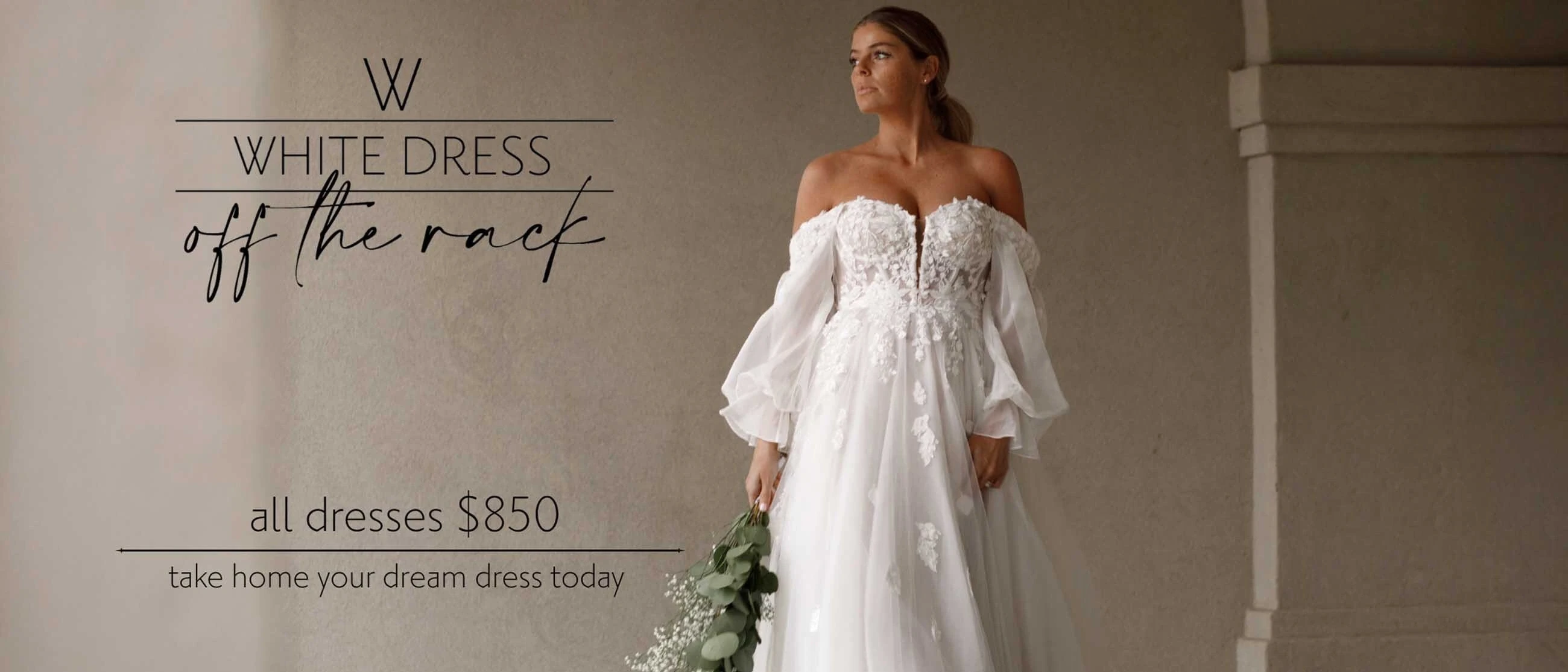 YES! That means no shipping or waiting for 4-6 months for your dress to be made. Our off the rack sample gowns come from our sister store, White Dress Bridal Boutique, and are marked down 40% - 80%.